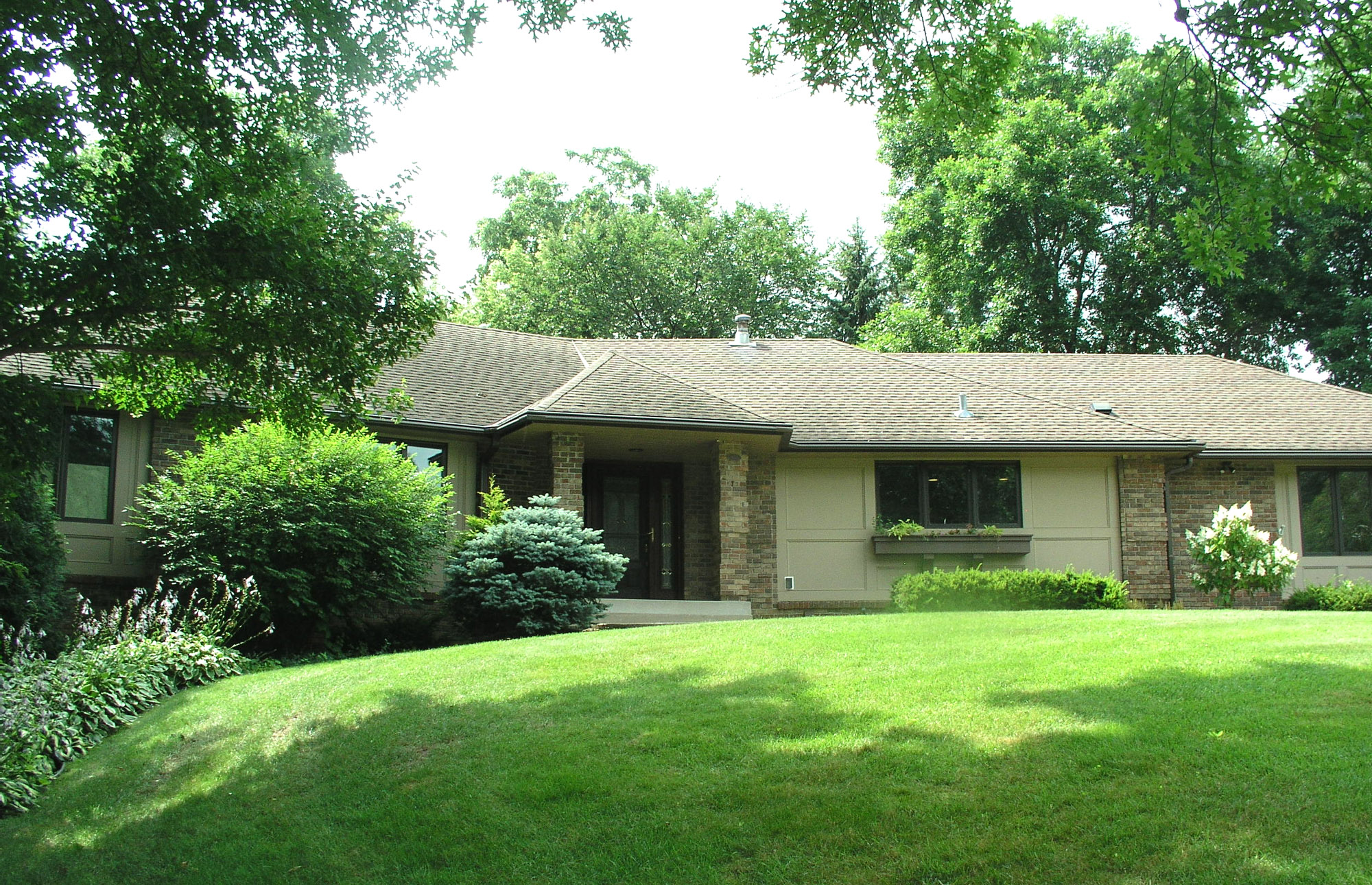 The new house, amid lots of trees |